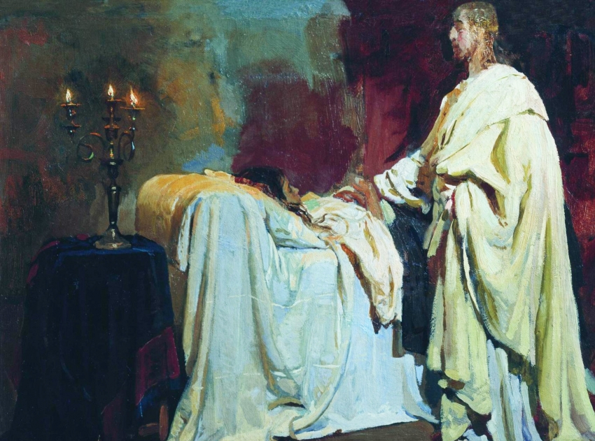 Todavía estaba hablando Jesús, cuando unos criados llegaron de casa del jefe de la sinagoga para decirle a éste: “Ya se murió tu hija. ¿Para qué sigues molestando al Maestro?” Jesús alcanzó a oír lo que hablaban y le dijo al jefe de la sinagoga: “No temas. Basta que tengas fe”. No permitió que lo acompañaran más que Pedro, Santiago y Juan, el hermano de Santiago.