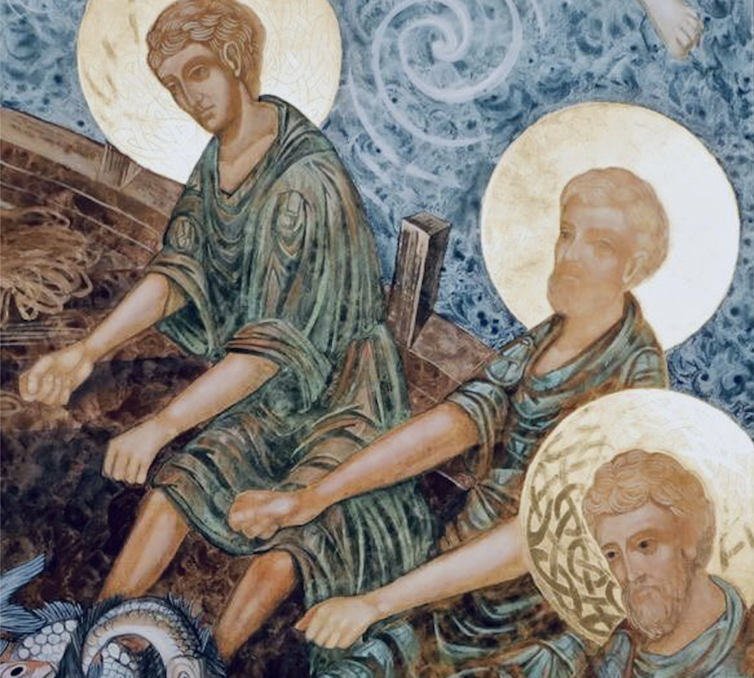 Jesús les dice: “Muchachos, ¿tenéis pescado?”. Ellos contestaron: “No”. Él les dice: “Echad la red a la derecha de la barca y encontraréis”. La echaron, y no podían sacarla, por la multitud de peces. Y aquel discípulo a quien Jesús amaba le dice a Pedro: “Es el Señor”.
