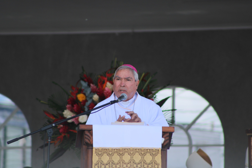 También la tendencia es en la práctica eliminar el eje horizontal. El eje horizontal que es el eje de nuestra relación con el prójimo. Qué relación con el prójimo tenemos, no todo el mundo por supuesto, yo confío en que los miles de peregrinos de este día aquí, de estos días, de los que están en las ocho diócesis de Costa Rica caminando hacia filiales, ermitas y diaconías para venerar la imagen de la Virgen de los Angeles, no somos así, queremos estar en la cruz y mantenernos fieles a ella.