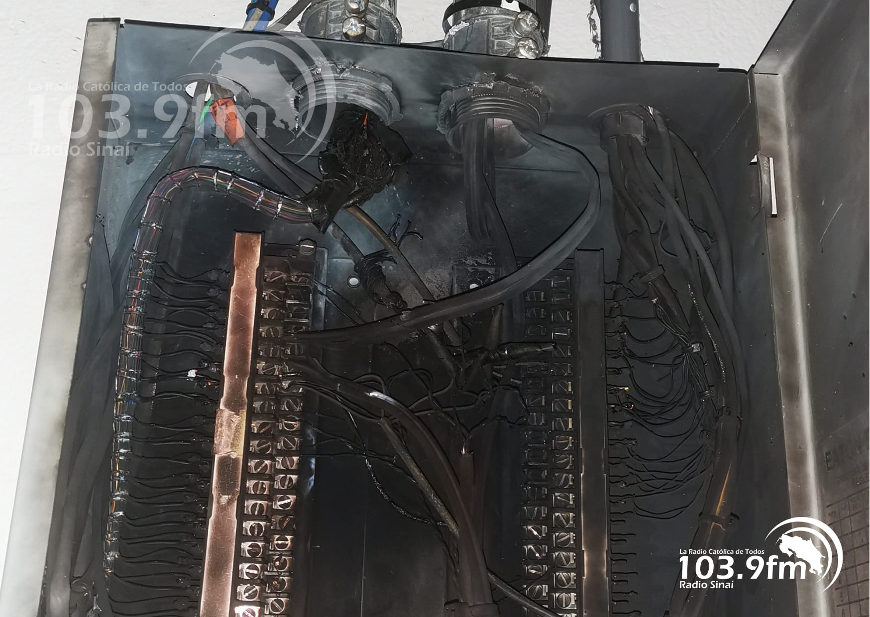 Al regresar el fluido eléctrico, por el proceso de activación automatizada del ICE, este cable hizo que se diera una segunda explosión en las propias instalaciones de Radio Sinaí. Se calcula que entre 19 mil y 34 mil voltios entraron de golpe a la instalación de la radio, causando el sobrecalentamiento de todo el sistema y la consecuente pérdida de casi todos los aparatos eléctricos.