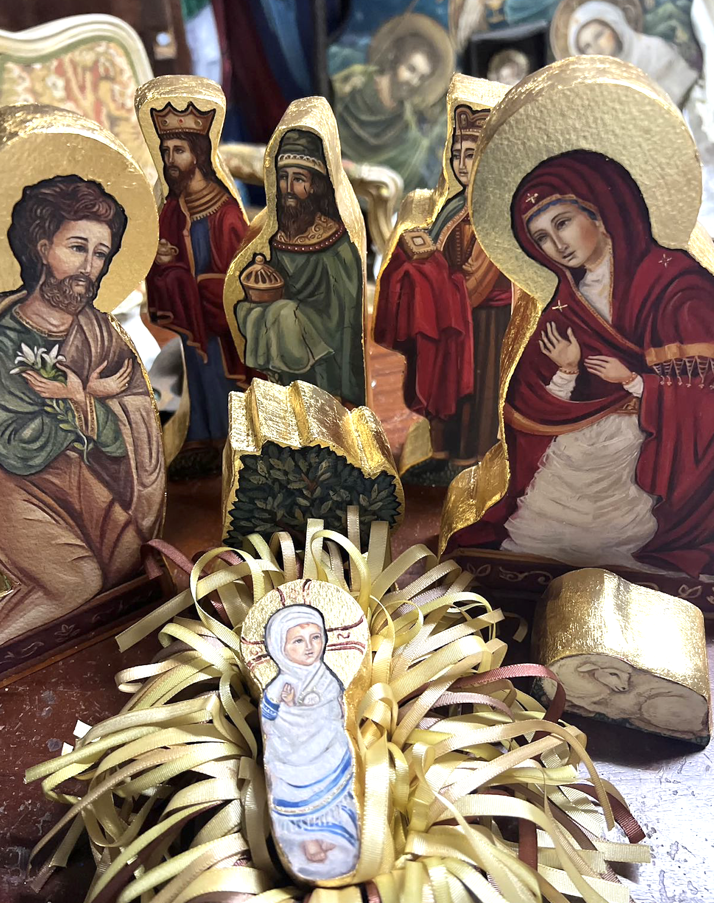 Pero Gaudium no es un pesebre más, como explica la propia artista, nace de la inspiración en Oriente y en Occidente: "De Oriente, recoge la profundidad del ícono, que no es simple representación, sino revelación del misterio eterno de la Encarnación. De Occidente, toma la tradición del pesebre con figuras, en la que el vacío de la cuna hasta la Nochebuena se convierte en signo de espera y esperanza. Ambas tradiciones se entrelazan aquí, para dar vida a una obra donde la contemplación del ícono y la vivencia familiar del nacimiento se abrazan en un mismo lenguaje de fe, capaz de anunciar con arte y silencio la llegada de Cristo al mundo".
