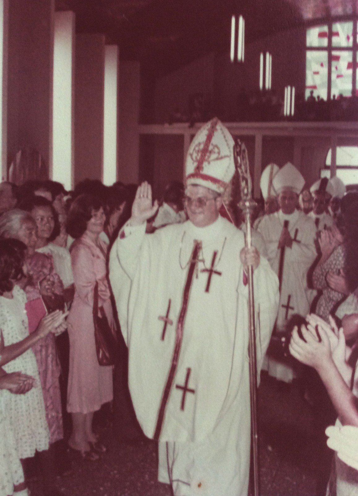 Fue consagrado en el Orden Episcopal el 27 de diciembre de 1979, bajo el lema "Que el amor de Cristo nos congregue en la unidad". En ese momento, tenía 30 años de ministerio sacerdotal y 53 años de edad.