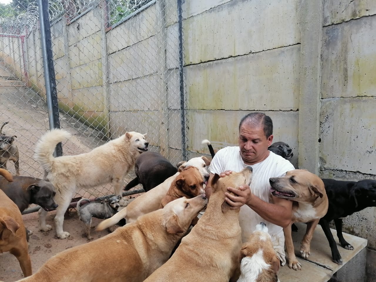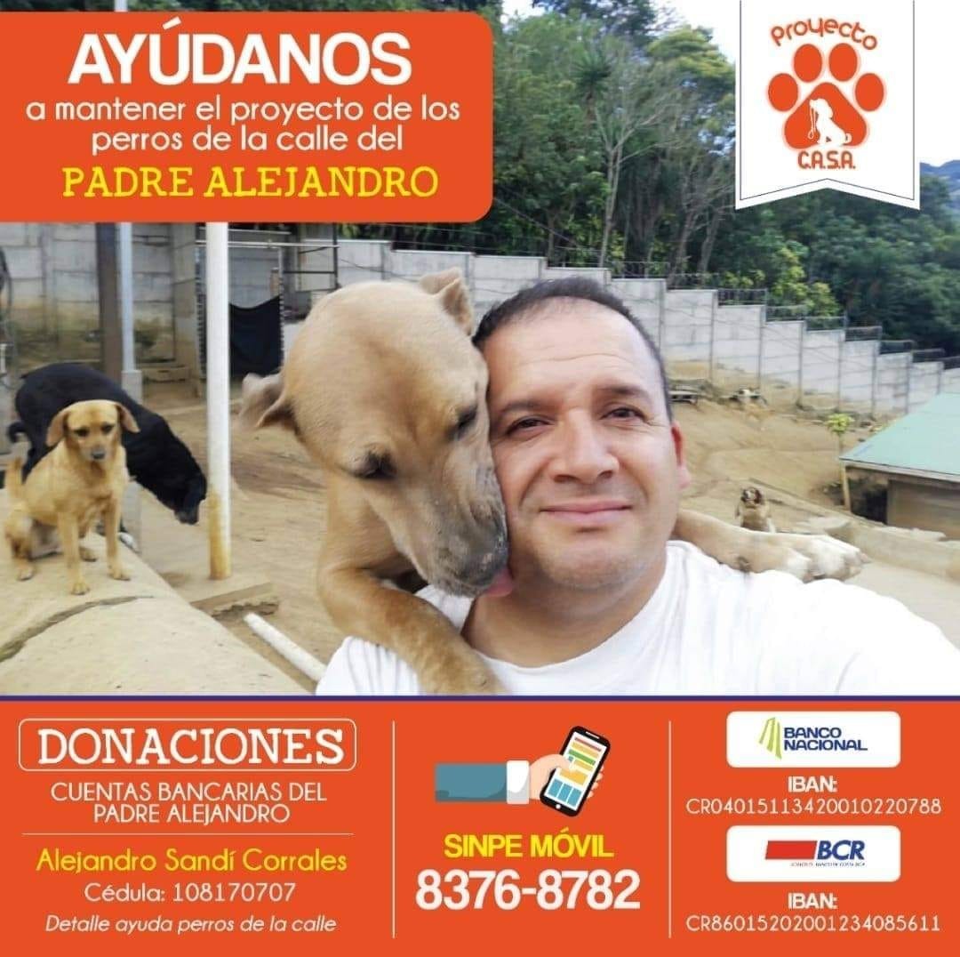 El sacerdote Alejandro Sandí alberga 96 perros, todos recogidos de la calle. Desde hace más de 10 años comparte su vocación sacerdotal con el amor por los animales, como creación de Dios que son. Fue por ahí de 2001 cuando recogió el primero, llegando a tener más de 120 durante este tiempo.